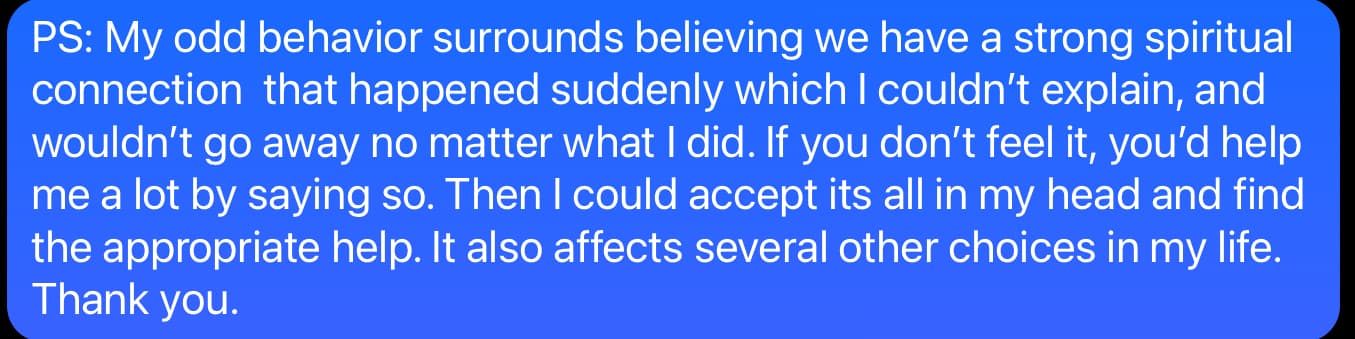 And If he saw ANY of my notes, then he for sure saw me begging for communication, and relaying my fears and pain too. And how did he respond? Ignore and avoid me more. Then send cold-ass messages that paint me as some crazy stalker lady who just wants a relationship with him and was nuts for reading into his stories. How in the world did he not see my pain, and confusion, and not want to help? Be it he is my TF or if all untrue, my friend?